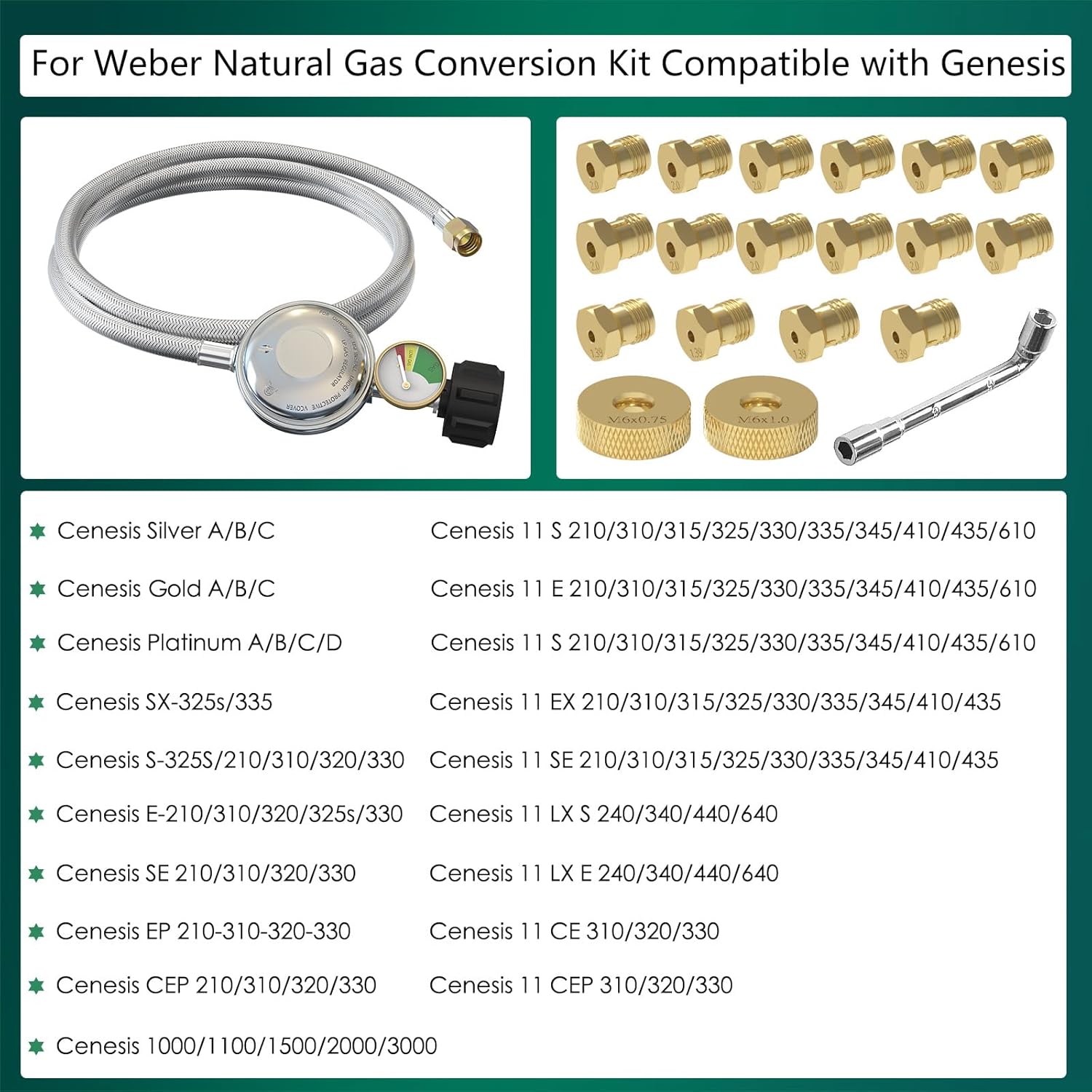 Garden Now 23080901 Natural Gas to Propane Conversion Kit for Weber Genesis or Genesis II Grill, Conversion Kit from NG to LP with Propane Regulator Hose, 16 Orifice Nozzles in 4 Sizes and Sleeve Tool