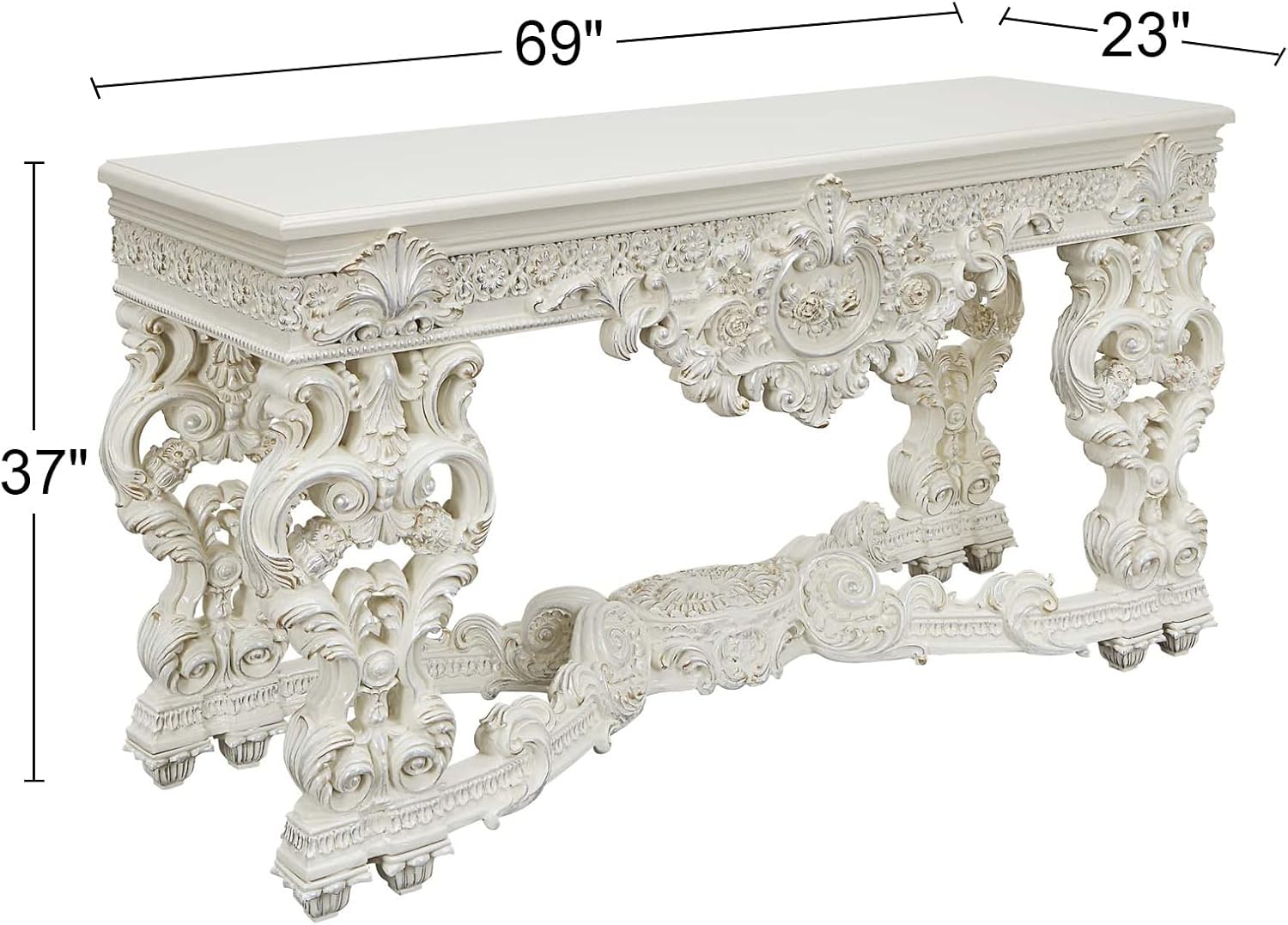 With white color and classic crafted design, your living room will never go out of fashion. Featuring a sturdy wooden construction, this sofa table features a square tabletop that is followed by intricate detailing around the apron and on the carvings of the curved legs supporting the base. The elegant design of this sofa table allows it to fit into any room decor.