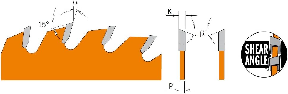 A new saw blade which reduces material waste and demand on the saw, while delivering reliable, industrial-quality performance cut after cut! This blade features a heavy-duty steel plate (44 Rockwell) for higher resistance during work, laser-cut heat expansion slots and sound dampening channels to prevent the tool from warping during rotation and greatly reduce vibrations! Blade teeth are made of Industrial Sinter Hip High-density carbide which prevents the tool from any material failure and guarantees a longer cutting life. Also, the new Shear Angle Grind on the teeth front face produces smooth cuts, reduces the blade cutting force and improves the cutting speed, setting a new standard for performance and value. Last but not least, the blade Non-Stick Orange Shield Coating keeps the blade running cool, reduces pitch build-up and protects against corrosion. Ideal for all woods including wet lumber. This outstanding saw blade is delivered in practical clamshell packaging.