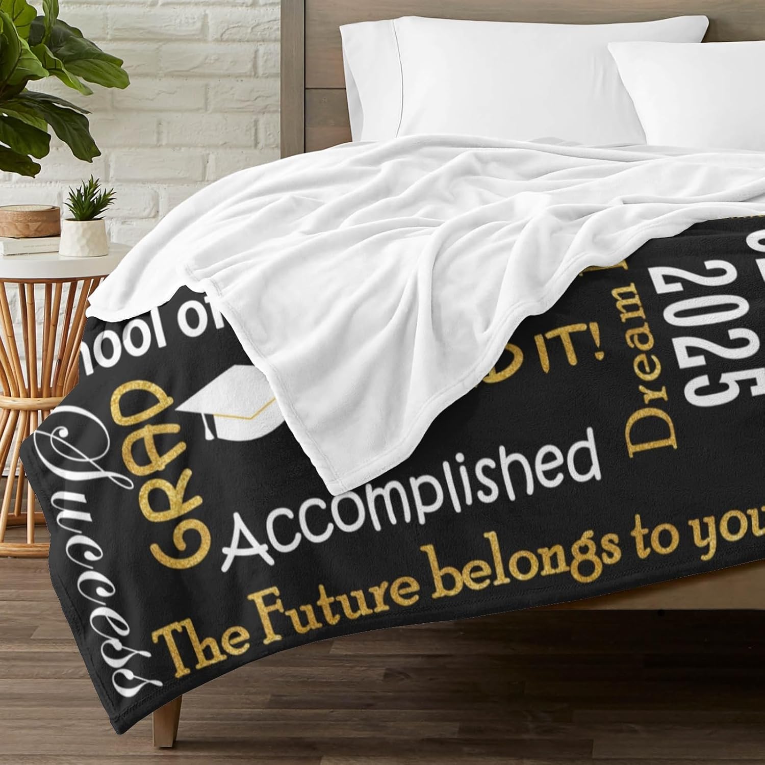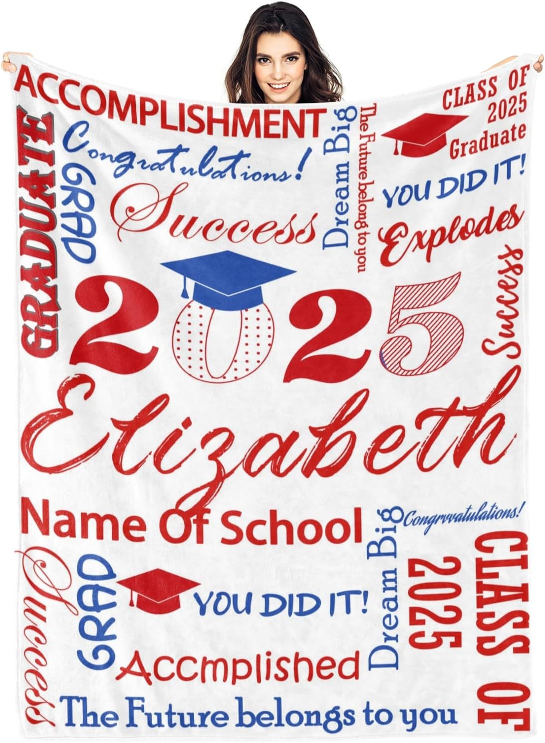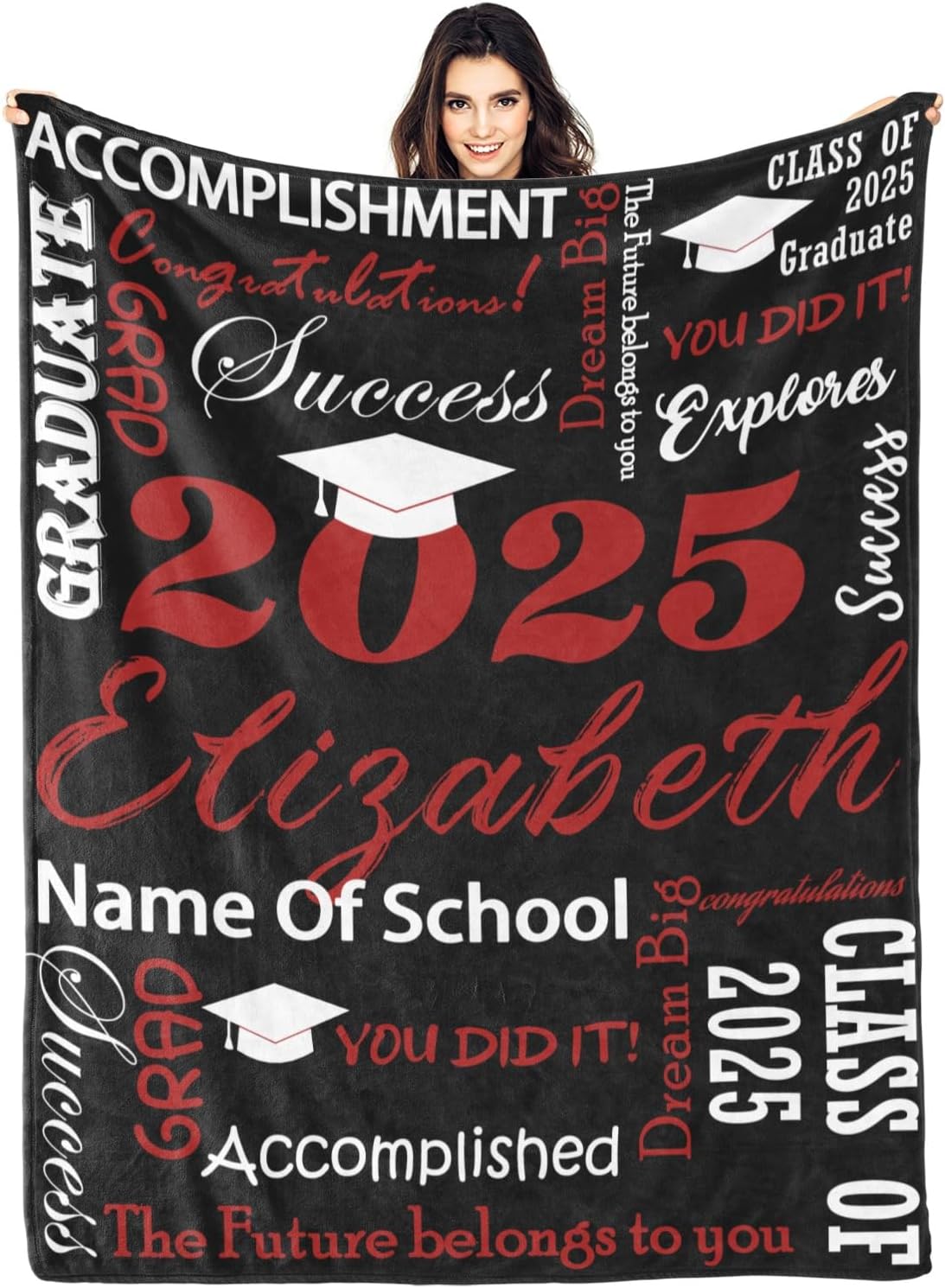 Personalized Graduation Blanket with Name School, Graduation Blanket 2025 Personalized, Custom Class of 2025 Graduation Gifts for Her Him Throw Blankets