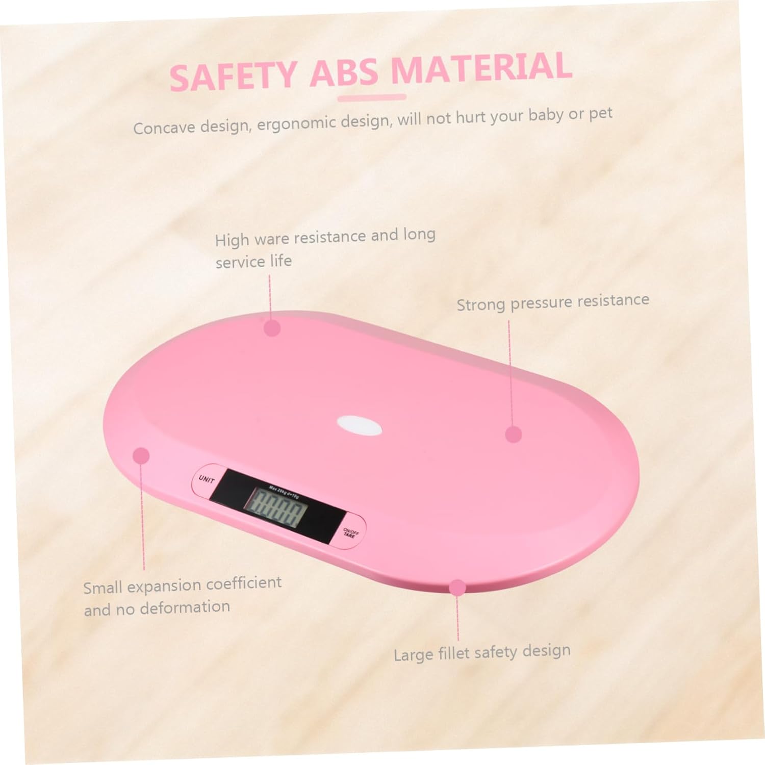 Package Include 1 x electric scale Features - Material: ABS Scale. - Capacity: 20g-20kg Weight Scale. - Color: Pink Scale. - Size: About 55.00X33.00X2.70cm/21.61X12.97X1.06inch Digital Scale. - The scale has high precision sensors to provide accurate and stable readings Weighing Machine. - The Scale can be used for , , Adult, even the Pets 20kg Scale. - You can easily read the numbers of this weight scale clearly from any distance or angle, even in dark place Digital Weight Scale. - High precision sensor, stable measurement, , suitable for 0-5 years old and weight within 20kg Weight Scale. - It helps you to monitor your ’s growth of weight and height Digital Weight Machine. - Powered by 2 AAA batteries (not included) Digital Pet Scale.Goods DescriptionDigital Weight Scale The digital weight scale here provides accurate and consistent measurement for your can know all the details of growth of your little . Weight Scale It is so happy to know our up everyday