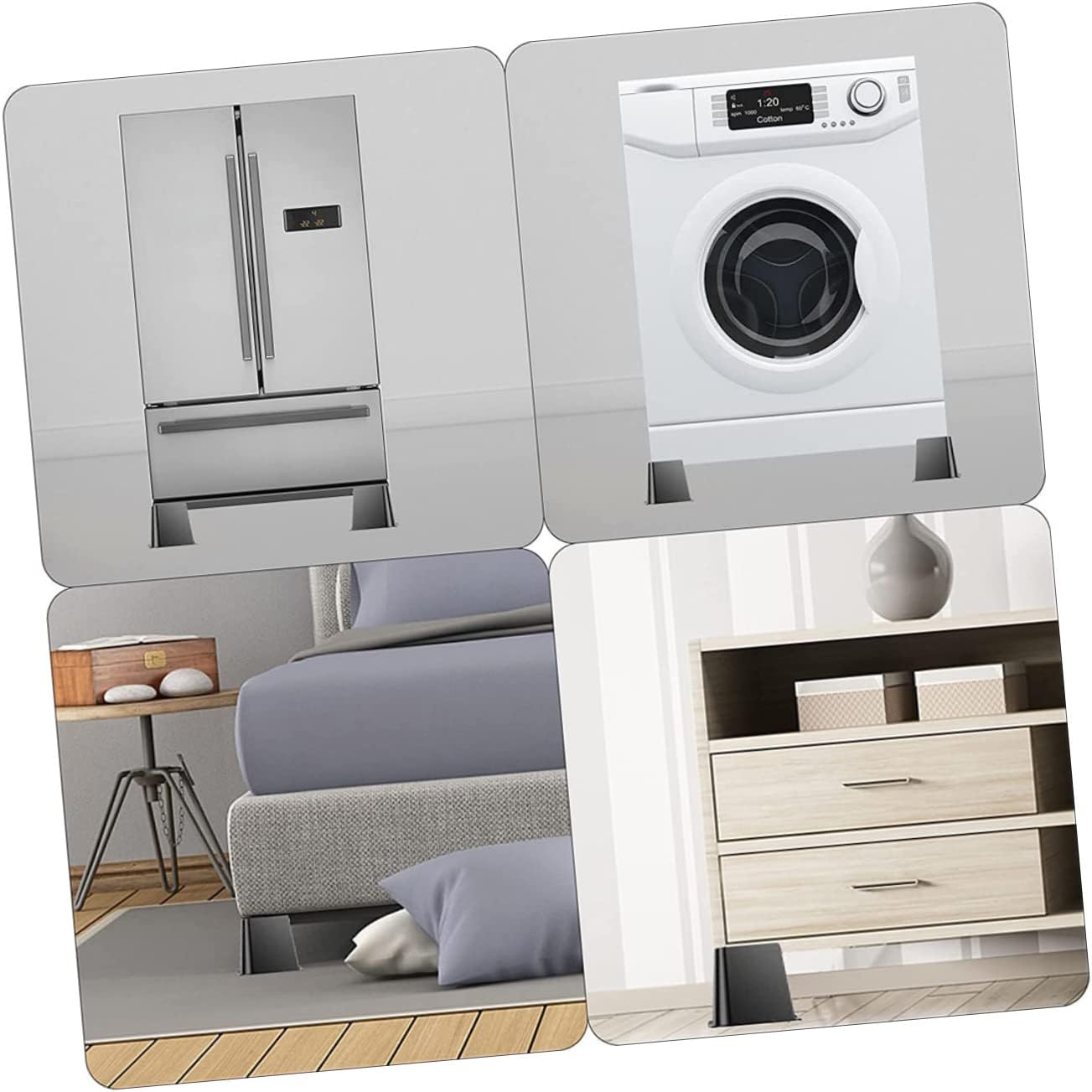 Package Include 4 x furniture risers Features - Color: Black table risers - Material: Rubber sofa risers - Size: About 12.50X11.70X11.70cm/4.91X4.60X4.60in bed raisers - Strong and durable, load-bearing performance. Anti-slip, increase stability and prevent ground wear couch risers. - This furniture riser gives a steady and heavy duty base to the furniture with smaller chance of collapsing bed risers. - These bed supports are the solution for lifting the bed or washing machine. fitted into the risers directly table risers for desk legs. - Made of rubber which features with stability and durability, very hard and smooth for durable usage table lift. - Withstand the weight of the heavy furniture in your home or office, make the position under the furniture larger table riser.Goods Informationbed lifts risers The furniture risers are made of rubber material, which has sturdy texture and can be durable for a lasting time, which will bring you a better experience.couch risers Suitable for most furniture, it can help increase the height and make your life more convenient